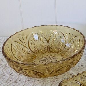 Vintage Anchor Hocking Medallion Honey Gold Glass Bowl