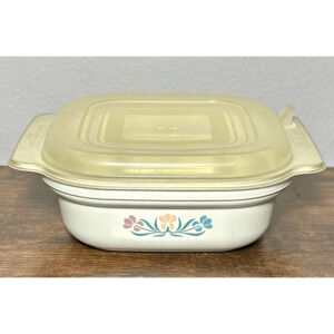 Vintage Anchor Hocking Microwave Casserole Dish 1 Qt Floral Pattern 635-9.