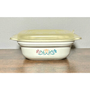Vintage Anchor Hocking Microwave Casserole Dish 1 Qt Floral Pattern 635-9