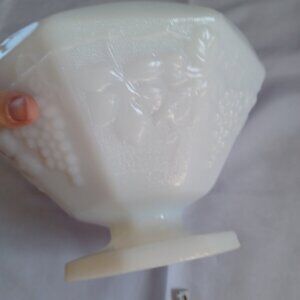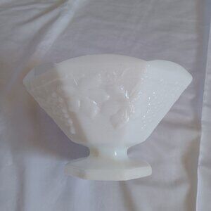 Vintage Anchor Hocking Milk Glass Footed Serving Bowl Pedestal White Planter