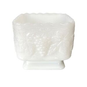 Vintage Anchor Hocking Milk Glass Planter Embossed with Grapes