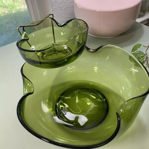 Vintage Anchor Hocking NOS Avocado green chip & dip bowl w/ clip. Original box