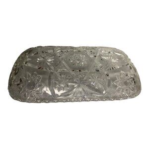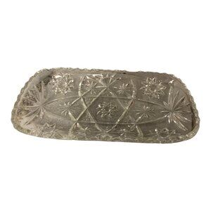 Vintage Anchor Hocking Prescut Celery Platter | Starburst Pressed Glass Relish T