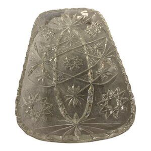 Beautiful vintage pressed glass celery tray by Anchor Hocking in the classic Prescut starburst pattern. This clear glass platter features intricate cut-style detailing with scalloped edges—perfect for serving celery, relishes, or desserts with mid-century charm.