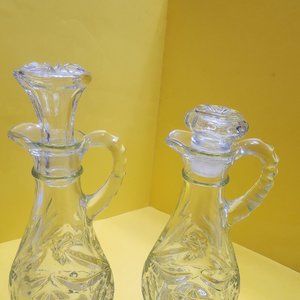 Vintage Anchor Hocking Prescut Clear Glass Star of David Cruets with Unmatching Stoppers