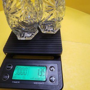 Vintage Anchor Hocking Prescut Clear Glass Star of David Cruets w/ Stoppers