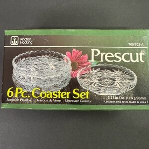 Vintage Anchor Hocking Prescut Glass Coaster Set - Clear