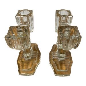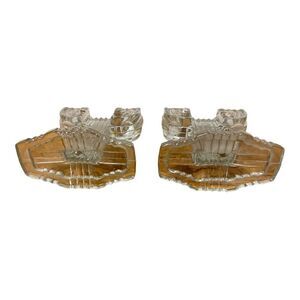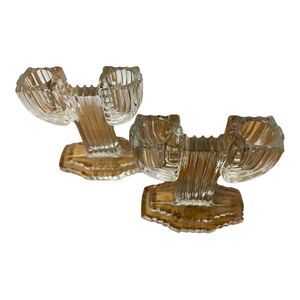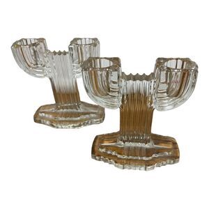 Vintage Anchor Hocking Queen Mary Clear Cactus Art Deco Candleholder SET of 2