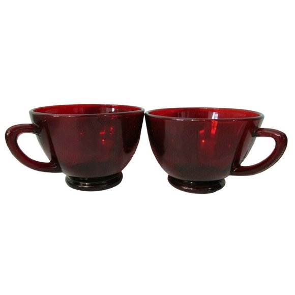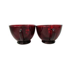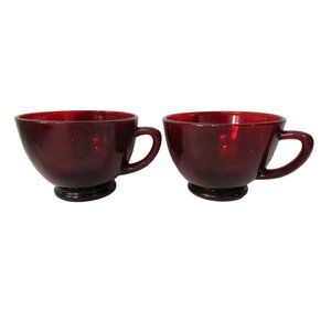 Vintage Anchor Hocking Royal Ruby Red Glass Snack Punch Tea Cups 1938 A Pair EUC