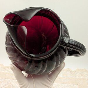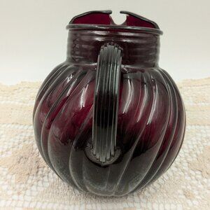 Vintage Anchor Hocking "Royal Ruby" Red Tilt Ball Swirl Pitcher - 64 fl. oz.