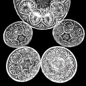 Vintage Anchor Hocking Serving Bowl 5 Pc. Set Medallion Star & Cameo Clear Press