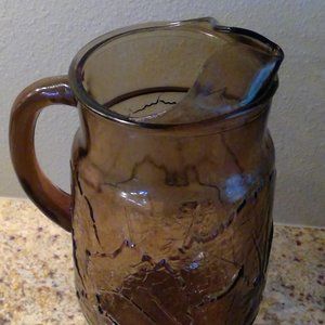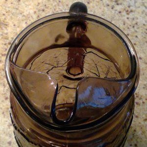 Pre-owned, vintage pitcher in great condition! No cracks or chips. Light wear on the bottom. 10" tall, 5.25" in diameter, holds 2 quarts. Smoky, tawny brown in color. Perfect for Halloween and fall celebrations!