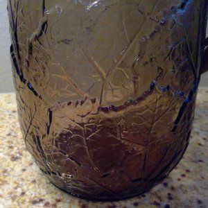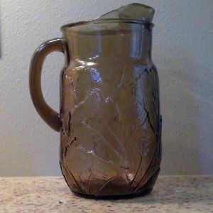 Vintage Anchor Hocking Smoky Sherwood Leaf Pattern Beverage Pitcher with Ice Lip