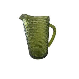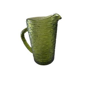 Vintage Anchor Hocking Soreno avocado green MCM bark pattern 26oz glass pitcher