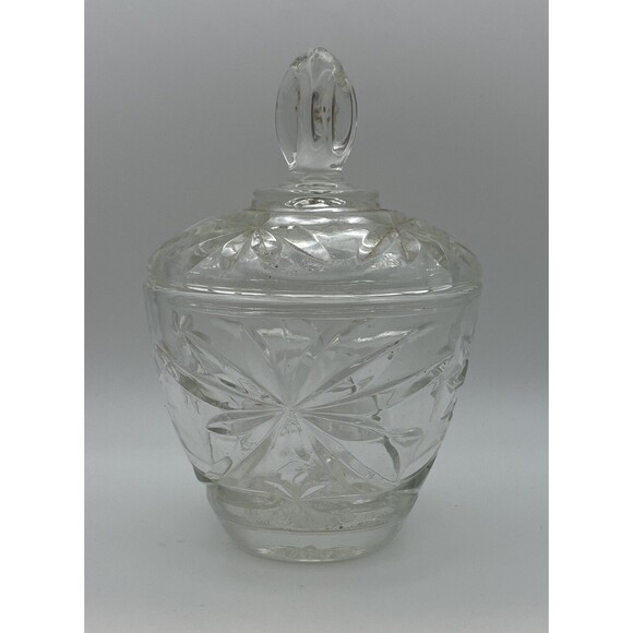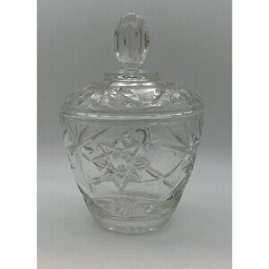 Vintage Anchor Hocking Star of David Clear Glass Covered Dish / Bowl Trinkets