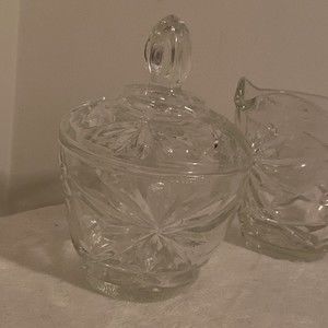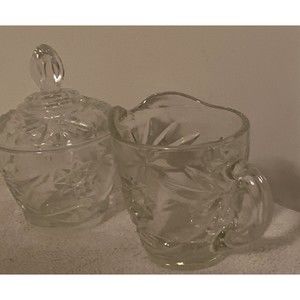 Vintage Anchor Hocking “Star of David” Creamer and Sugar Bowl with Lid