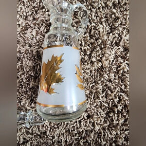 Vintage Anchor Hocking "Starlyte" Gold Leaf Glass Cruet Oil Vinegar