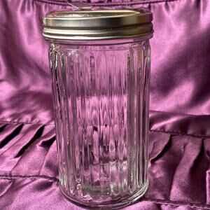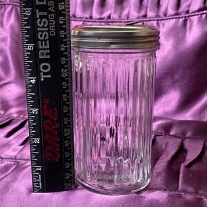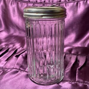 Vintage Anchor Hocking Sugar Dry Goods Clear Ribbed Metal Top flip opening pour-