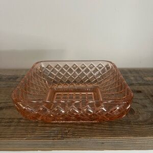 Vintage Anchor Hocking Waterford Pink/Peach Square Candy Dish Diamond Pattern