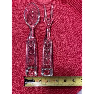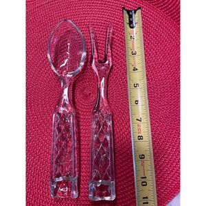 Vintage Anchor Hocking Wexford Pattern Glass Fork Spoon Salad Server Set