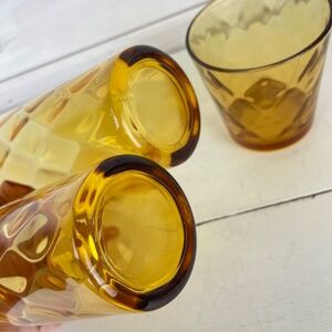 Vintage Anchor Hocking diamond pattern amber glass tumblers / water glasses