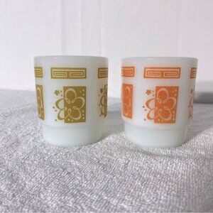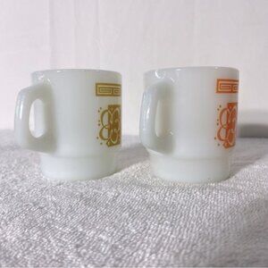 Vintage Anchor Hocking Yellow & Orange Atomic Cloud Pattern Stacking Mugs x2