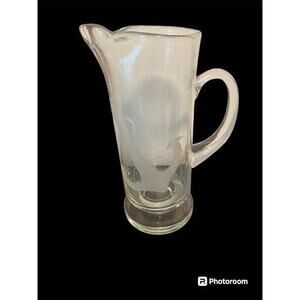 Pitcher and 4 glasses have an etched anchor. One of the glasses has a chip in the lip so I’m including it for free. This Vintage cocktail set.