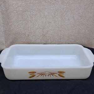 Vintage Anchor Hocking Fire-King1.5 QT.baking dish with wheat pattern item #410