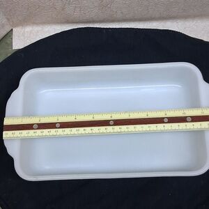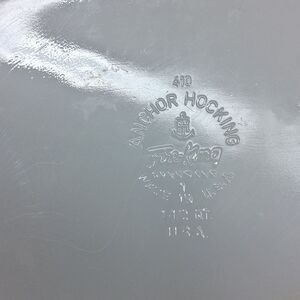 Vintage Anchor Hocking Fire-King1.5 QT. baking dish with wheat pattern item #410. This dish was produced between 1962 and 1966. Made of milk glass which is known for its durability, and heat resistance. Features oven baking and retains heat well , easy to clean. Preowned. No chips or cracks. Excellent condition.