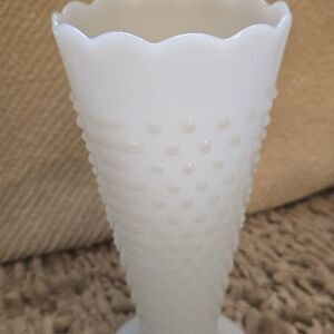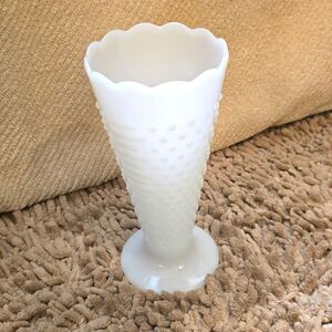 Large Vintage Anchor Hocking 9 1/2-in tall hobnail milk glass vase, excellent condition, no chips no cracks
