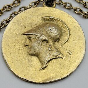 Vintage Ancient Knight Cameo Pendant Necklace Gold Tone 24 Inch Signed FM