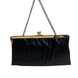 Embrace sophistication with this Vintage Andé Women's Cute Black & Gold Evening Party Clutch. Sized S, this evening clutch features a kiss lock, gold-tone chain strap and frame. Ideal for any party or classy event.