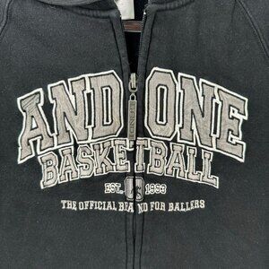 Vintage And1 Mens Black Basketball Hoodie With Zip Front & Pockets Y2K 90s READ