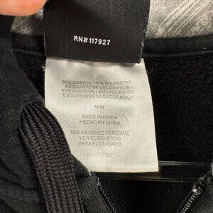 READ: Small hole on right sleeve cuff, hood strings fraying at ends.