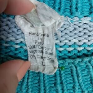 Vintage Andina Pullover Sweater Size Large Green Aqua 100% Cotton Dry Clean Only