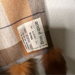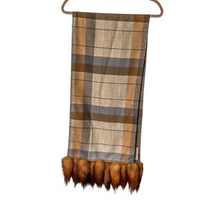 Vintage André Laug for Audrey Plaid Wool Scarf w/ Real Fox Tail Trim