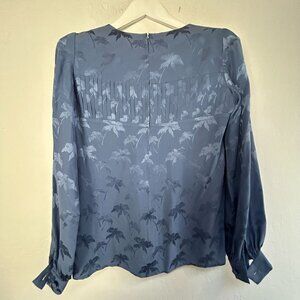 Vintage Andre Laug Womens Pleated Long Sleeve Blouse Size 10 Blue Made In Italy