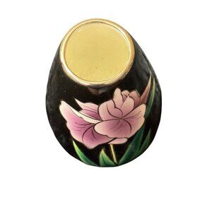 Vintage Andre R. Made In Japan Black Ceramic Bud Vase With Pink & Green Floral