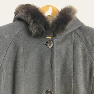 Vintage Andrea Collection Black Wool Blend Fox Fur Trim Hooded Coat Size 6