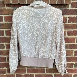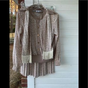 Vintage Andrea Gayle, Cream and tan, Size 8, Pleated midi skirt, Bomber jacket style jacket, Detachable fringe scarf!