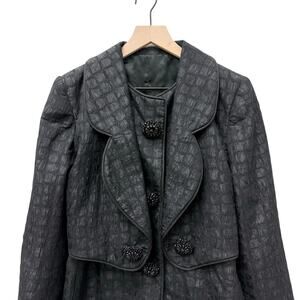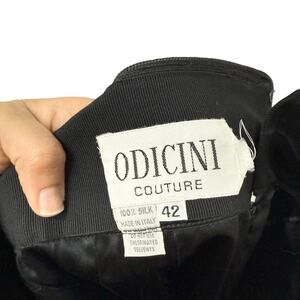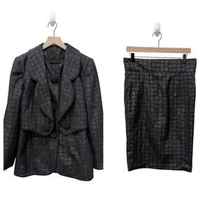 Vintage Andrea Odicini 100% Silk Black Texture Set Blazer Skirt Size 42