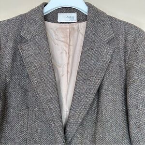 Vintage Andrea York by Farah Women 16 Wool Blazer Herringbone Academia Brown Gra