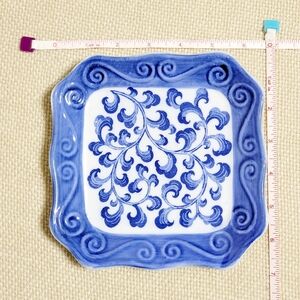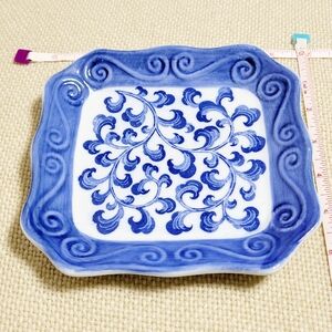 Vintage Andrea by Sadek Blue & White Square Dish with Raised Scrolling