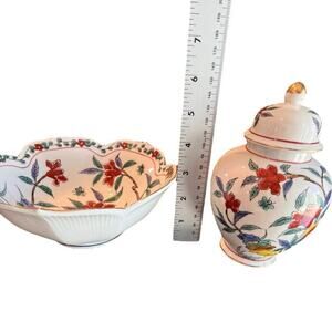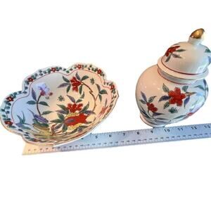 Vintage Andrea by Sadek Bowl and Vase with Lid, Matching Pair, Handpainted