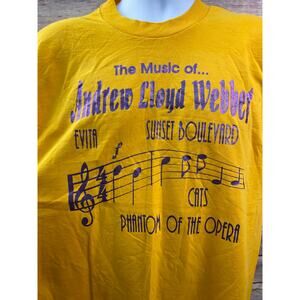 Step back in time with this vintage Andrew Lloyd Webber shirt, a must-have for any Broadway enthusiast! This shirt features iconic imagery from his legendary plays like Cats and Phantom of the Opera.