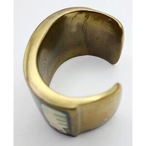 Minor tarnishing on the brass, also a scratch on the inside of brass cuff, but smooth to the touch. Please see all close ups as its in good used condition for a vintage piece.