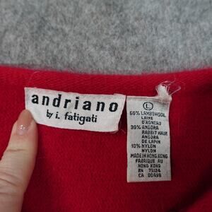 Vintage Andriano Fatigati Sweater Womens Large Lambswool Angora Embroidered Red