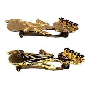 In a quaint little workshop, these angelic treasures were meticulously crafted. Delicate brooches or pins depicting serene angels, their golden wings poised in prayer. Each angel's halo is adorned with deep, ruby red rhinestones. They're a charming reminder of grace and beauty, perfectly suited for any elegant gathering. I believe that these may have originally been used as Mother's pins with their children's birthstone colors in them. Please note: the colors are actually a little different but not as different as they appear in the photos. They measure 1.5" tall x 7/8" at the widest point.