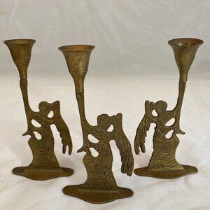 Vintage Solid Brass Angel Candle Holder Taper Candleholder Lot Of 3 Candlestick.