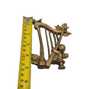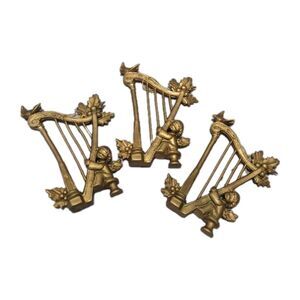 Vintage Angel Cherub Playing Harp Gold Plastic Christmas Ornaments ITALY 3x Lot